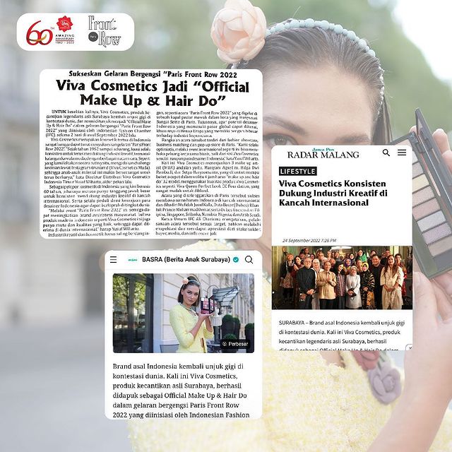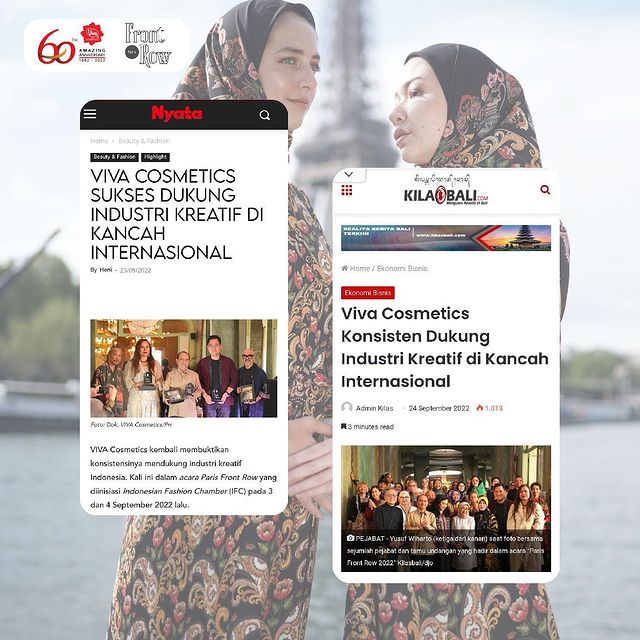 Viva Cosmetics sebagai brand legendaris & kosmetik tertua Indonesia senantiasa menunjukkan inovasinya. Selama 60 tahun berkarya, sudah banyak sekali event berskala nasional maupun internasional yang didukung penuh oleh Viva Cosmetics. Tak heran apabila banyak sekali media yang tertarik untuk membuat peliputan tentang kontribusi Viva terhadap Front Row Paris 2022.